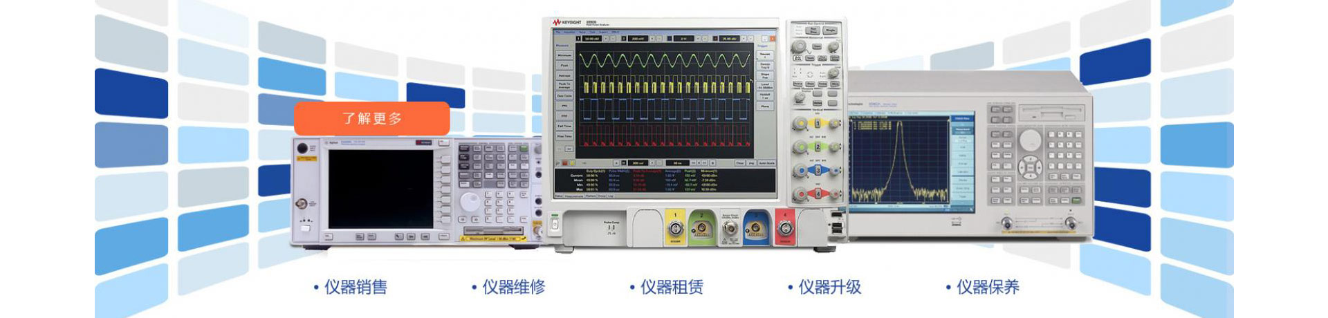 公司經營品牌有:HP / Agilent 、TEKRONIX,ADVANTEST、ANRITSU、R/S、MARCONI、FLUKE、NATIONAL、KENWOOD、MOTOROLA、IFR、LEADNER、BOONTON、HITACHI、WILTRON、ANDO等。